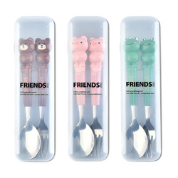Juego de tenedor y cuchara Cuchara de acero inoxidable para niños Tenedor Utensilios de comedor Dibujos animados portátiles