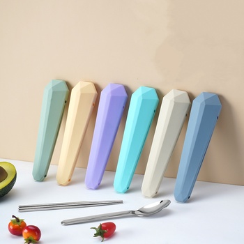 Vajilla portátil Juego de vajilla de silicona de acero inoxidable Tenedor Cuchara Palillos Juego de tres piezas Vajilla