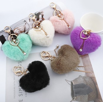Lindo Corazón de perla llavero de felpa de piel sintética Pom Ball llaveros para mochilas monedero bolso coche llave encantos Accesorios
