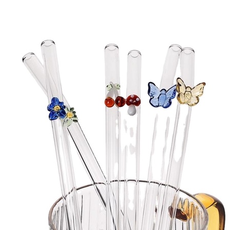 पुन: प्रयोज्य Borosilicate तितली मशरूम ग्लास पीने के तिनके उच्च तापमान प्रतिरोध स्पष्ट रंगीन तुला कॉकटेल पुआल