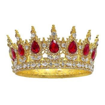 Torta in oro con corona di cristallo rotonda barocca con decorazioni diadema di strass e accessori per Bouquet