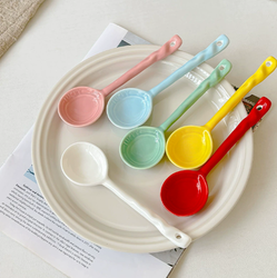 Cucchiaio da Dessert carino con manico lungo dritto in ceramica con testa rotonda cucchiaio gelato da Dessert per regalo